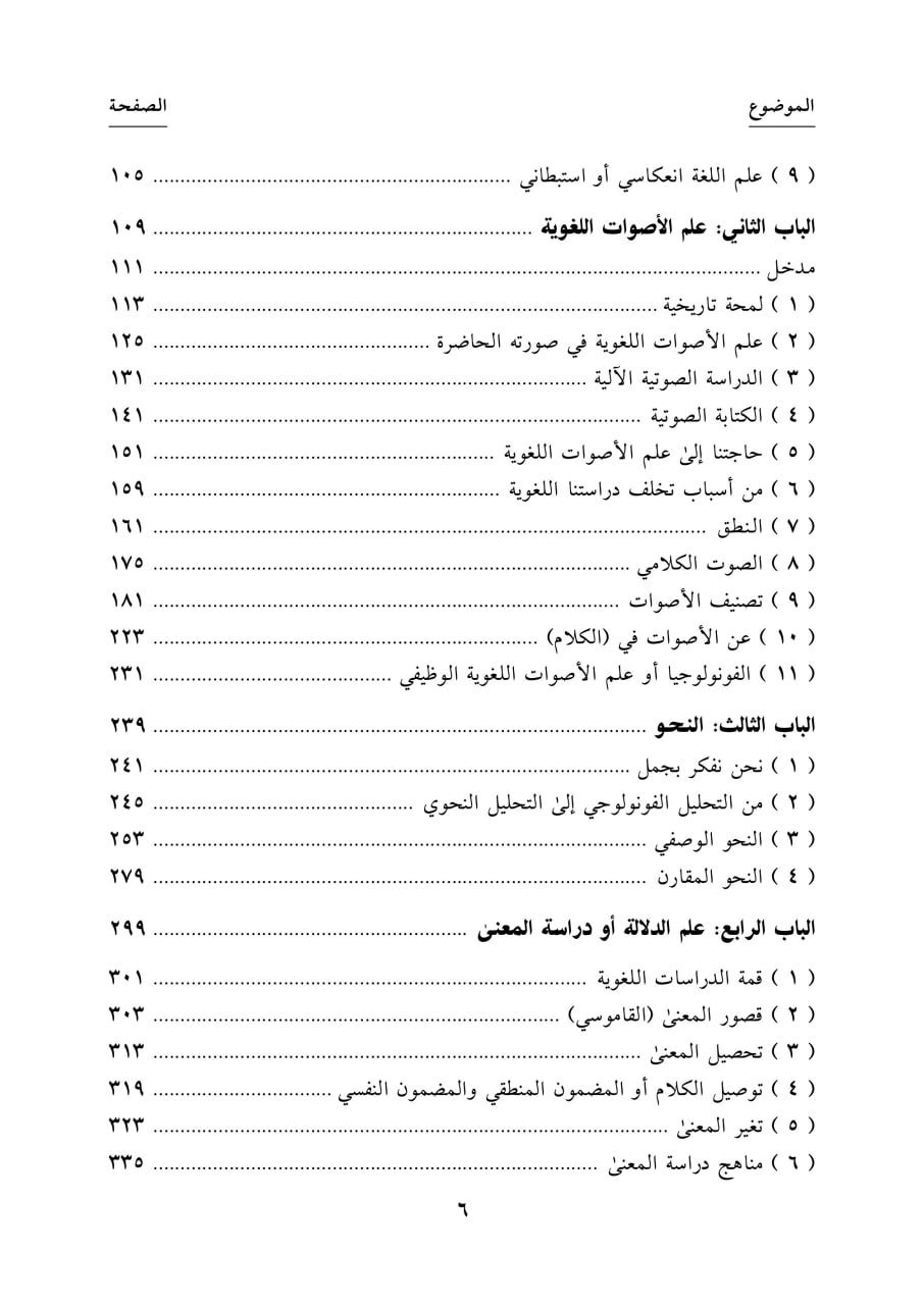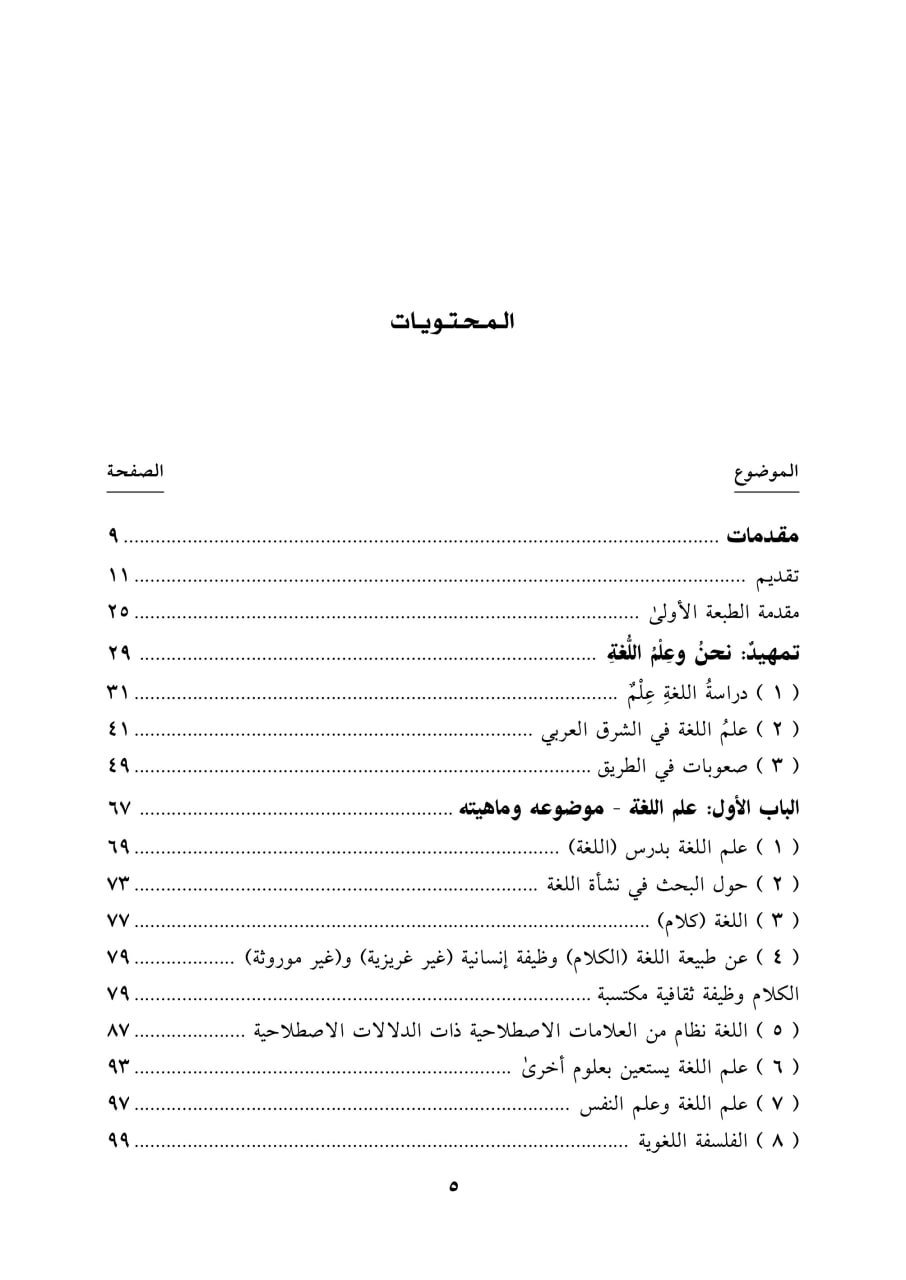 “هذا الكتاب في (علم اللغة)، وهو كتاب يحدد أسلوب عرضه للموضوعات، ومنهج تناوله للمسائل، أنه (مقدمة للقارئ العربي). لقد حاولت تبسيط حقائق هذا العلم ما وسعني التبسيط، مع حرصي على الدقة والسلامة، حتى يستقل القارئ المبتدئ بتحصيل ما فيه ومدارسته، وينتقل منه آمنًا إلى مطالعة أصول هذا العلم.