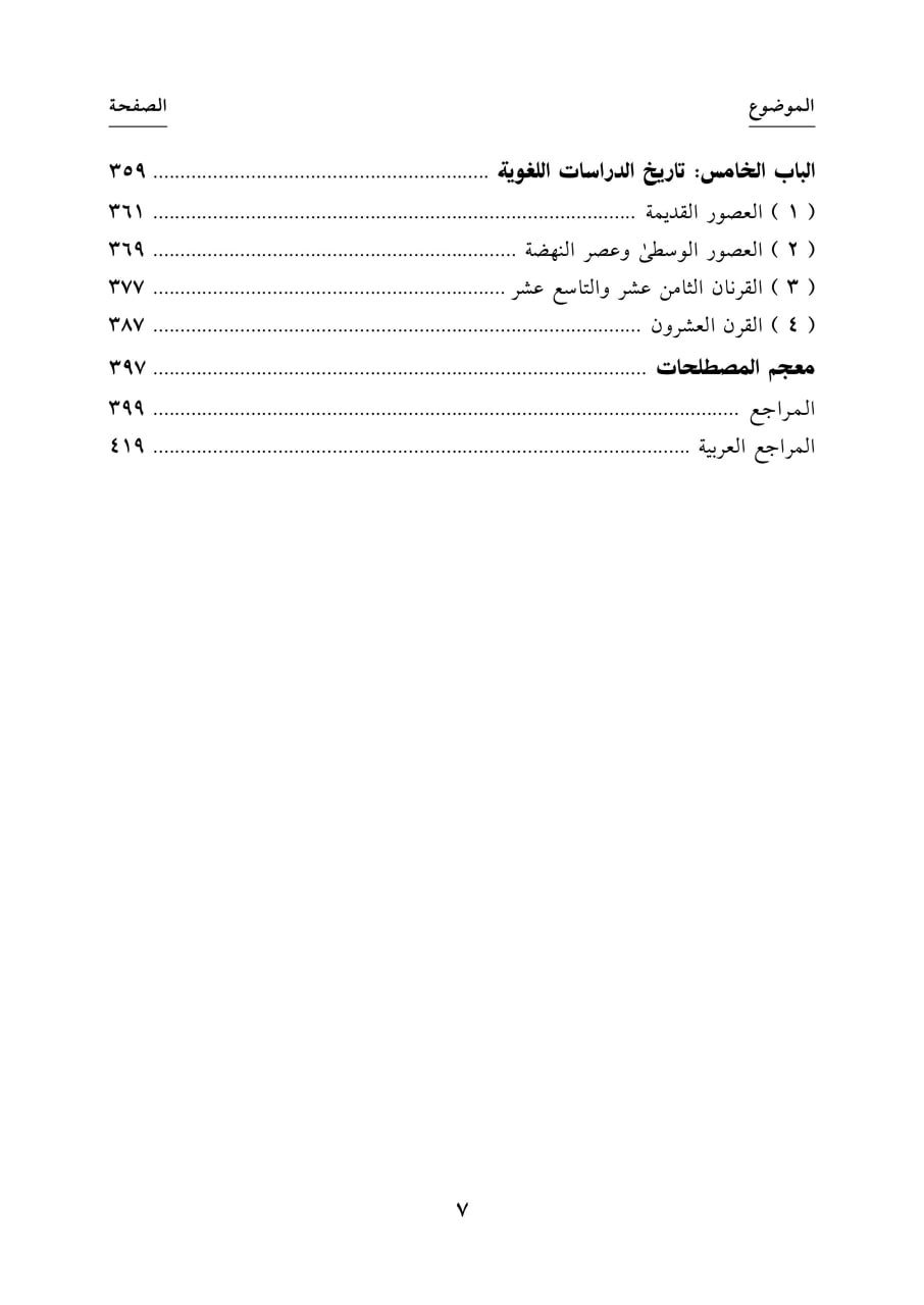 وأنا لم ألتزم في جملة ما عرضت مذهبًا بعينه، في كل أصوله وفروعه، من مذاهب الدرس اللغوي المتعددة، بل ركنت إلى التعرف بالأصول العامة التي أرتضيها، والتي قل أن يختلف فيها أصحاب هذا العلم، مع بيان مصادرها ومذاهب أصحابها في معظم الأحوال، ومع الإشارة، في الوقت نفسه إلى الآراء المخالفة الصادرة عن مذاهب أخرى، حتى يكون القارئ على بينة من المذاهب اللغوية المختلفة، وعلى دراية بالفلسفة التي قامت عليها، وعلى علم بأهم المؤلفات فيها؛ فلا يضل الطريق في زحمتها عندما يتاح له الاتصال بشيء منها.”